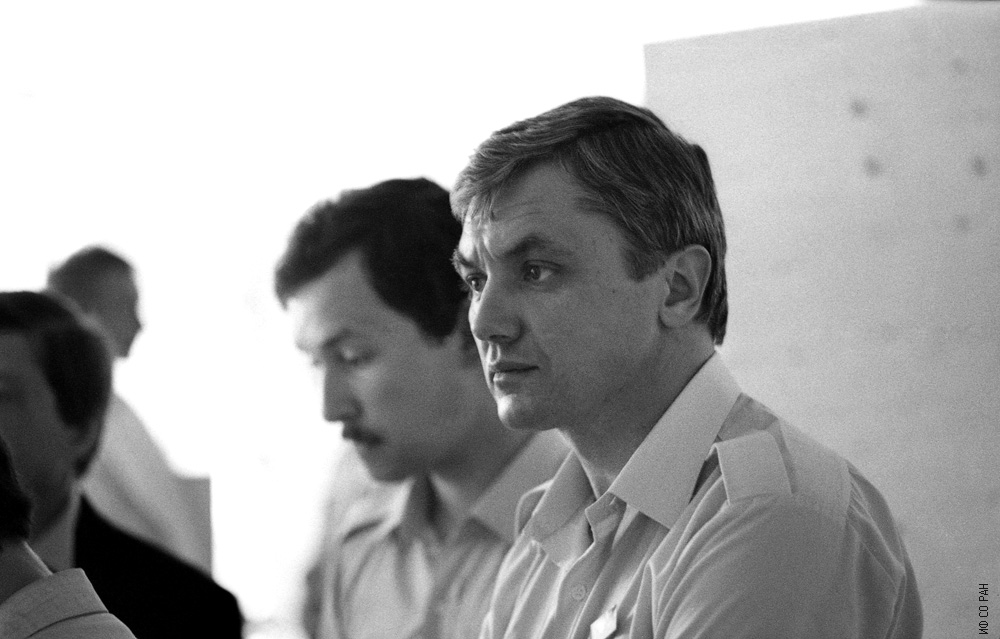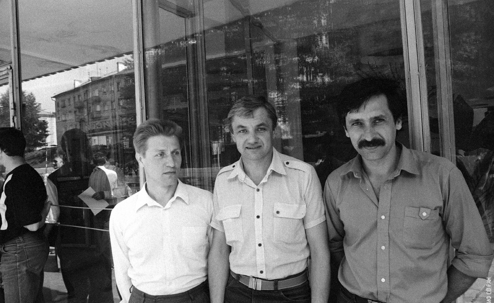 1986 год. Панкрац А.И. (в центре), старший научный сотрудник лаборатории резонансных свойств магнитоупорядоченных веществ Института физики им. Л.В. Киренского Сибирского отделения Академии наук СССР (ИФ СО АН СССР), с учеными из Ленинграда, на семинаре по функциональной магнетоэлектронике в Дивногорске (Красноярский край), организованном лабораторией резонансных свойств магнитоупорядоченных веществ (заведующий лабораторией Петраковский Г.А.).