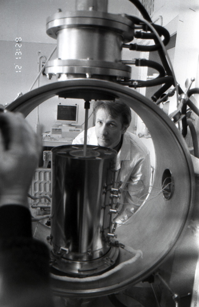 1987 год. Паршиков С.А., сотрудник лаборатории кристаллофизики Института физики им. Л.В. Киренского Сибирского отделения академии наук (ИФ СО РАН), за установкой для выращивания монокристаллов из расплава по методу Чохральского. Красноярск.