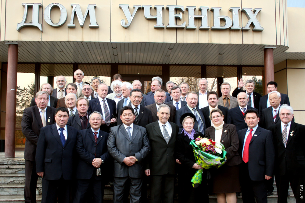 После торжеств, посвященных 100-тию со дня рождения академика Киренского Леонида Васильевича, организатора и первого директора Института физики им. Л.В. Киренского Сибирского отделения Российской академии наук (ИФ СО РАН) . Фото на память у Дома ученых Красноярского научного центра Сибирского отделения Российской академии наук. Слева направо: (в первом ряду): Неустроев И. Г., Мигалкин А. В., Николаев И. Н., Артемьев А. Е., Гительзон И. И., Овчинникова Т.Л. (дочь Киренского), Карлова О. А., Шабанов В.Ф. Во втором ряду (слева направо): Москвичев В. В., ?, Шкуряев П.Г., Александров К. С., Севостьянов В. Н., Колодезников И. И., Дегерменджи А. Г., Куимов В.В., Патрин Г. С., Волков Н. В., Чурилов Г. Н., Ким П. Д. В третьем ряду (слева направо): Втюрин А. Н., Захаров Ю. В., Рубайло А.И., Хлебопрос Р.Г., Вальков В. В., Ббеляков Г. П., Зиненко В. И., Миронов В. Л., Петраковский Г. А., Красноярск. Слабко В. В., Зырянов В. Я., Сафронов А. Ф., ?. В четвертом ряду (слева напаво): Архипкин В. Г., Овчинников С. Г., Черкашин В. С., Онучин А. А., 9 апреля 2009 года. Красноярск.