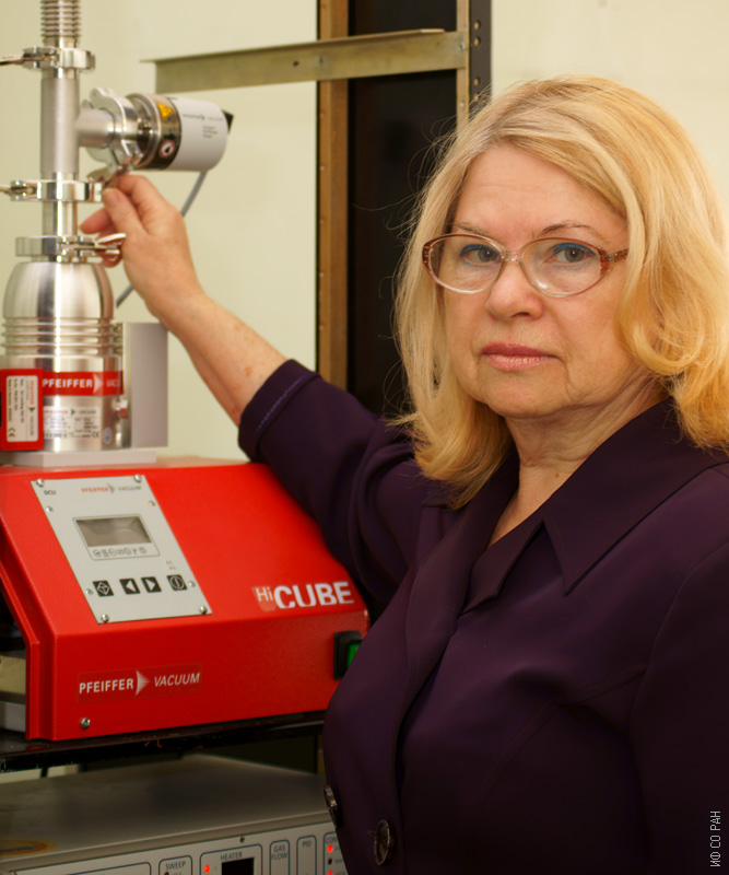 Полякова Клавдия Павловна, кандидат физико-математических наук, старший научный сотрудник лаборатории магнитодинамики Института физики им. Л.В. Киренского Сибирского отделения Российской академии наук (ИФ СО РАН), специалист в области синтеза и исследования магнитных свойств тонких пленок ферри- и ферромагнетиков, фото 2011 года. Красноярск.