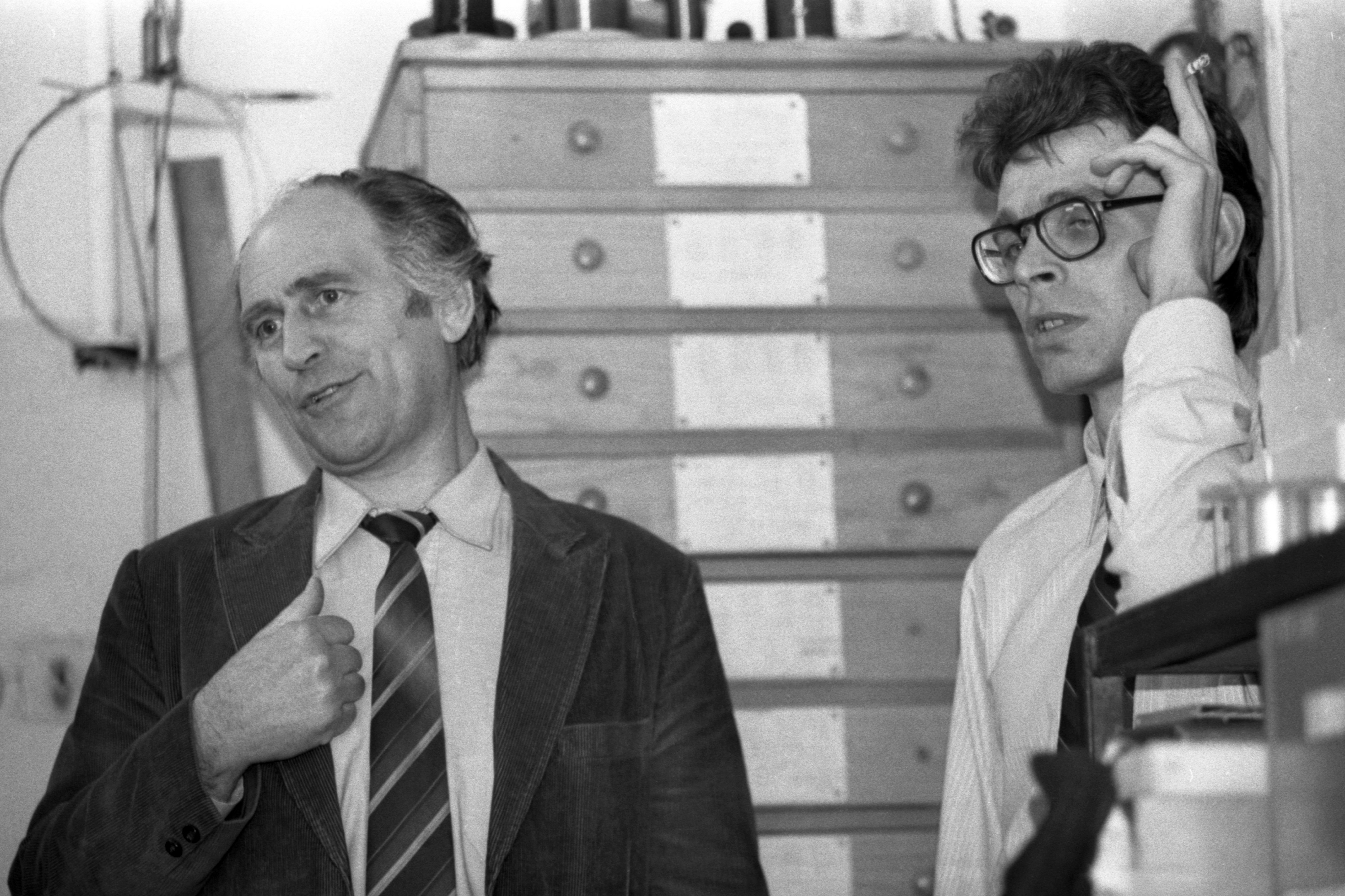 1985 год. Сотрудники лаборатории радиоспектроскопического структурного анализа Института физики им. Л.В. Киренского Сибирского отделения Академии наук СССР: Зеер Э.П., заведующий лабораторией (слева) и Пономаренко А.В., младший научный сотрудник, который в этом году защитил диссертацию на соискание ученой степени кандидата физико-математических наук. Красноярск.