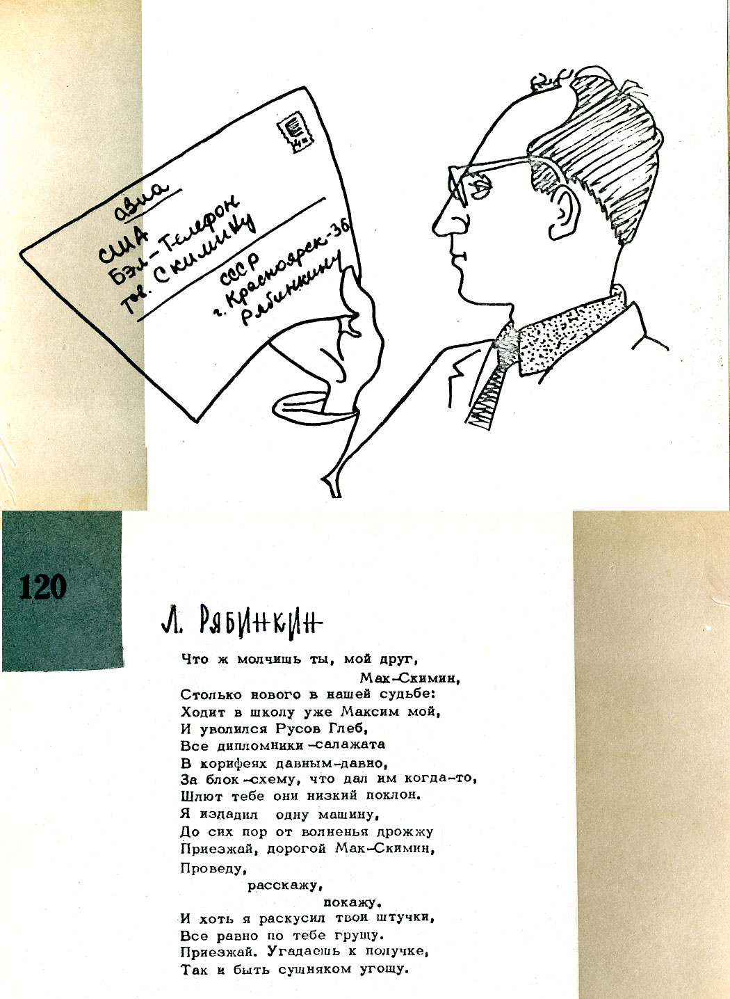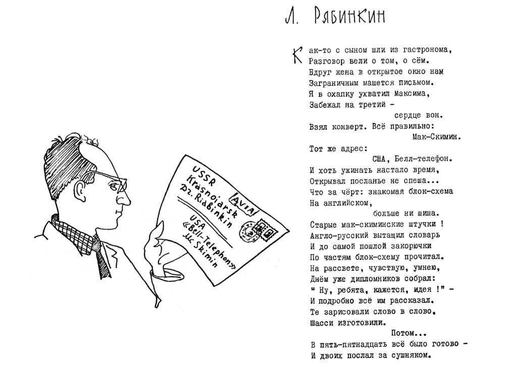 Дружеский шарж Рябинкина Л.Н. из книги "Музей друзей", изданной научными сотрудниками Института физики Сибирского отделения Академии наук СССР (ИФ СО АН СССР) Олегом Артемьевичем Баюковым и Николаем Сергеевичем Чистяковым. Удивительная книжка дружеских шаржей и эпиграмм на сотрудников Института физики СО АН СССР. Она вышла в 1967 году к 10-летию начала работы института. Вышла небольшим тиражом в 100 экземпляров и распространялась строго по списку, лично в руки. Узнать себя на страницах книги смогли 48 самых ярких и заметных личностей молодого института. Позже (в 1971 году) вышла вторая книга под таким же названием. Что побудило их взяться за такой труд, авторы подробно изложили в предисловии к первой и второй книгам. Книги размещены на сайте.