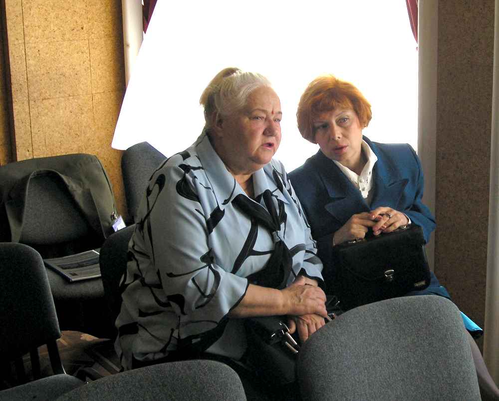Рябинкина Людмила Ивановна (слева) и Трубачева Галина Борисовна, сотрудники Института физики им. Л.В. Киренского Сибирского отделения Российской академии наук (ИФ СО РАН), на Евроазиатском симпозиуме «Прогресс в магнетизме» (EASTMAG-2004), Красноярск, август 2004 года
