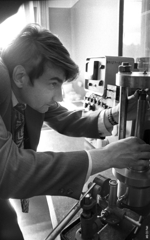 Серышев С.А., младший научный сотрудник лаборатории радиоспектроскопического структурного анализа Института физики им. Л.В. Киренского Сибирского отделения Академии наук СССР (ИФ СО АН СССР). Фото 1982 года. Красноярск.