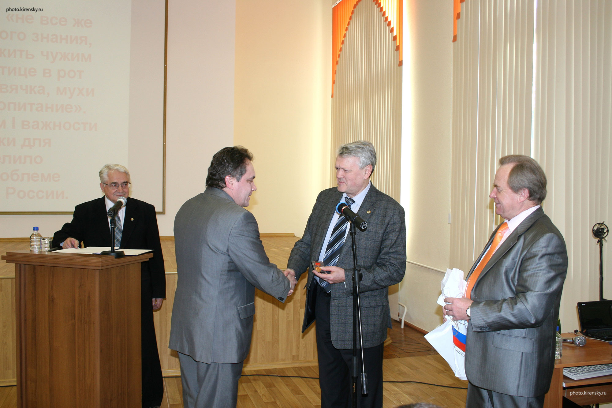 2012 год. В конференц-зале Института физики им. В.В. Киренского Сибирского отделения Российской академии наук (СО РАН) состоялось заседание ученого Совета, посвященного Дням российской науки. На ученом Совете присутствовали гости не только Красноярска. На снимке, слева направо: академик Шабанов Василий Филиппович, председатель Президиума Красноярского научного центра СО РАН, Волков Никита Валентинович, исполняющий обязанности директора Института физики им. Л.В. Киренского СО РАН, академик Асеев Александр Леонидович, вице-президент и председатель СО РАН, Шкуряев Петр Георгиевич, ученый секретарь Красноярского научного центра СО РАН.