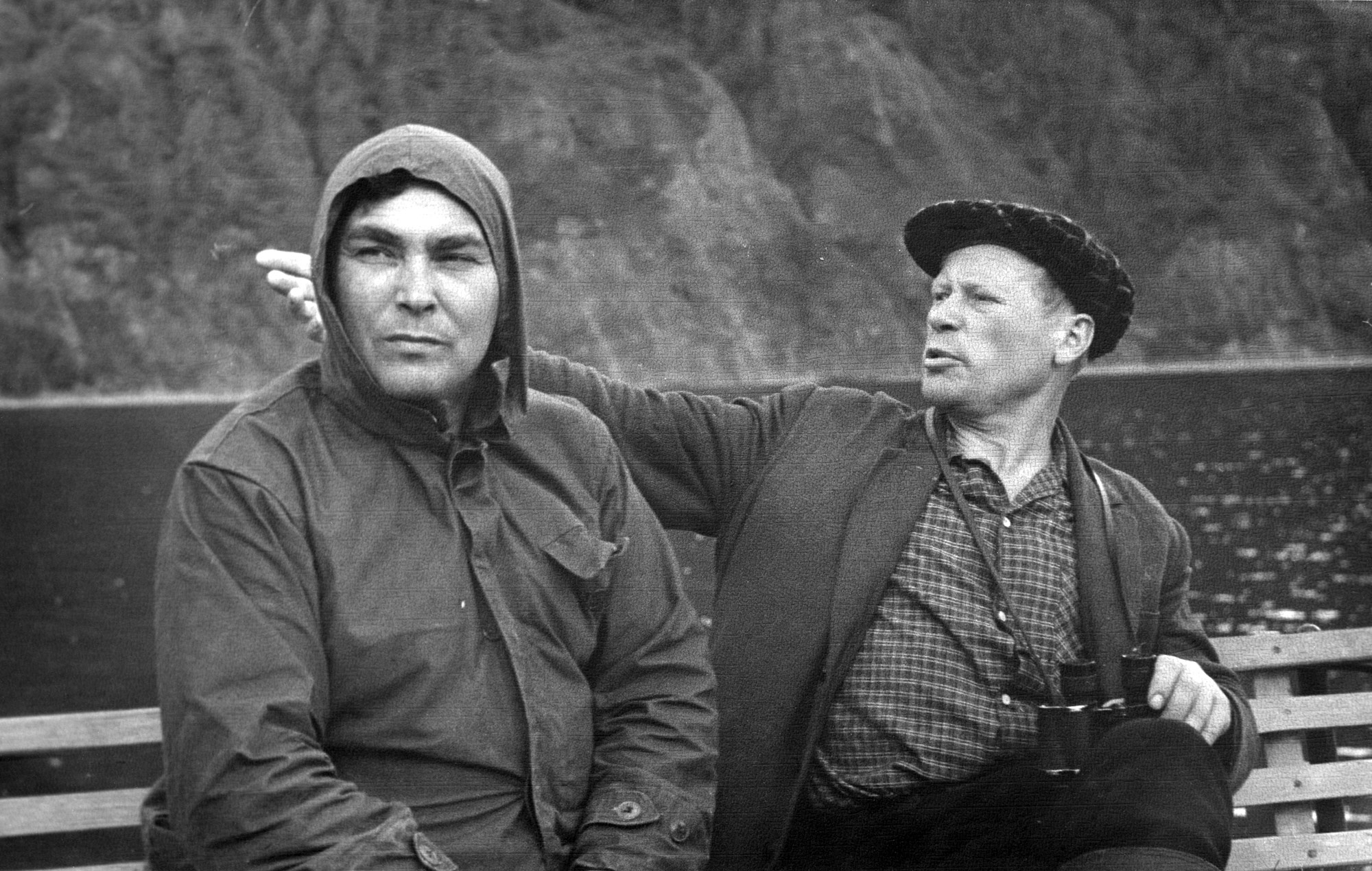 1967 год (июль-август). Очередная научная экспедиция сотрудников отдела биофизики Института физики Сибирского отделения Академии наук СССР (ИФ СО АН СССР) на Телецкое озеро. На фото И.А. Терсков, заведующий отделом биофизики института и руководитель экспедиции (слева).