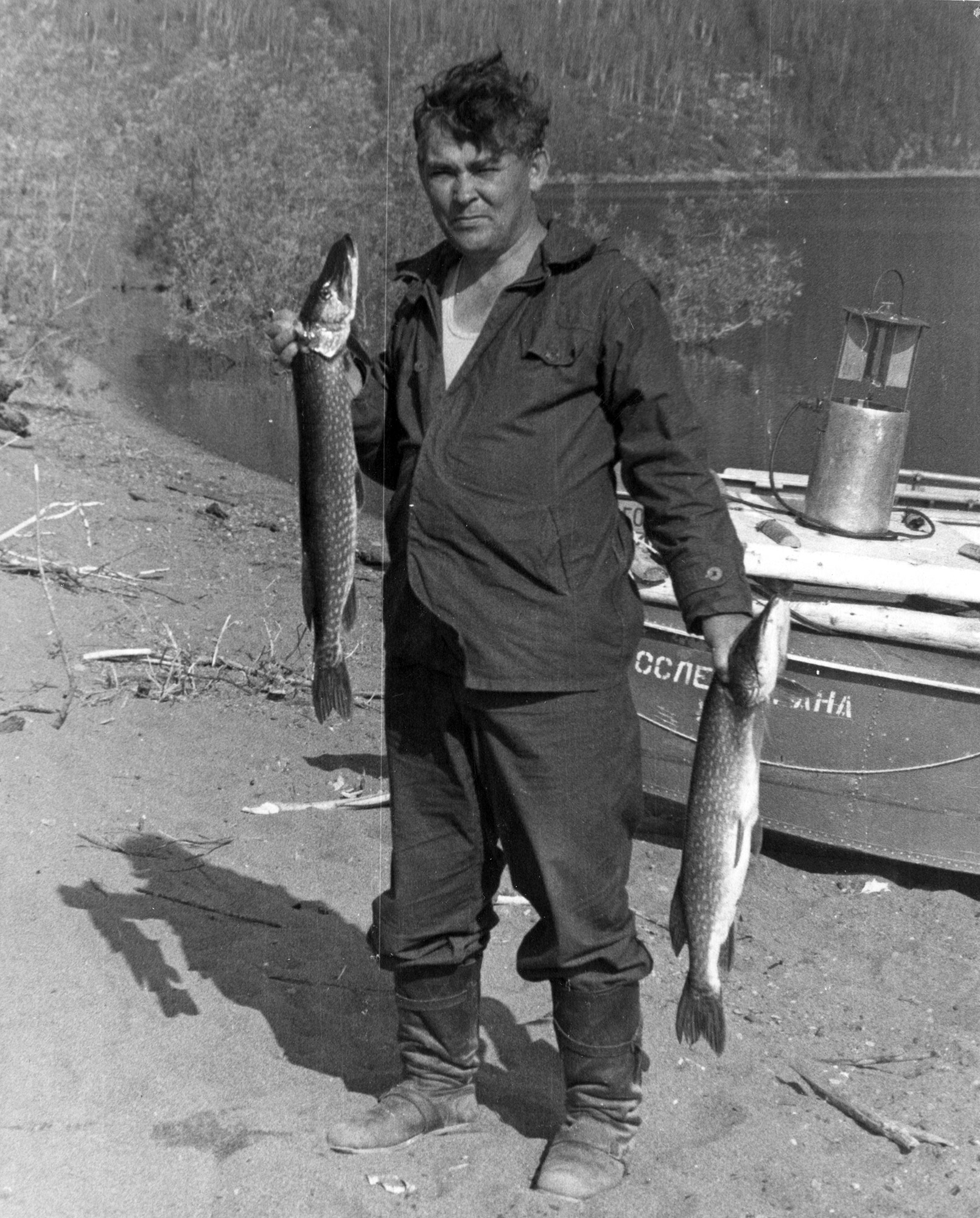 Академик Иван Александрович Терсков, директор Института физики им. Л.В. Киренского Сибирского отделения Академии наук СССР и заведующий отделом биофизики института, любил рыбалку, был заядлым рыболовом. На фото - с уловом в одной из научных экспедиций сотрудников отдела биофизики, 1973 год.