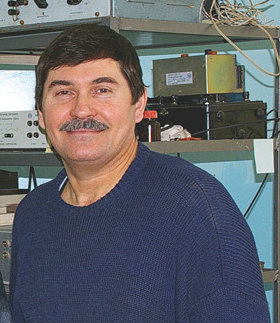 Группа по изучению магнитных свойств жидких кристаллов лаборатории сильных магнитных полей Института физики им. Л.В. Киренского Сибирского отделения Российской академии наук (ИФ СО РАН), за установкой для исследования магнито-оптических свойств жидких кристаллов,. Слева направо: Паршин Александр Михайлович , Садовский Анатолий Михайлович, Томулевич Юрий Викторович, фото 2006 года. Красноярск.
