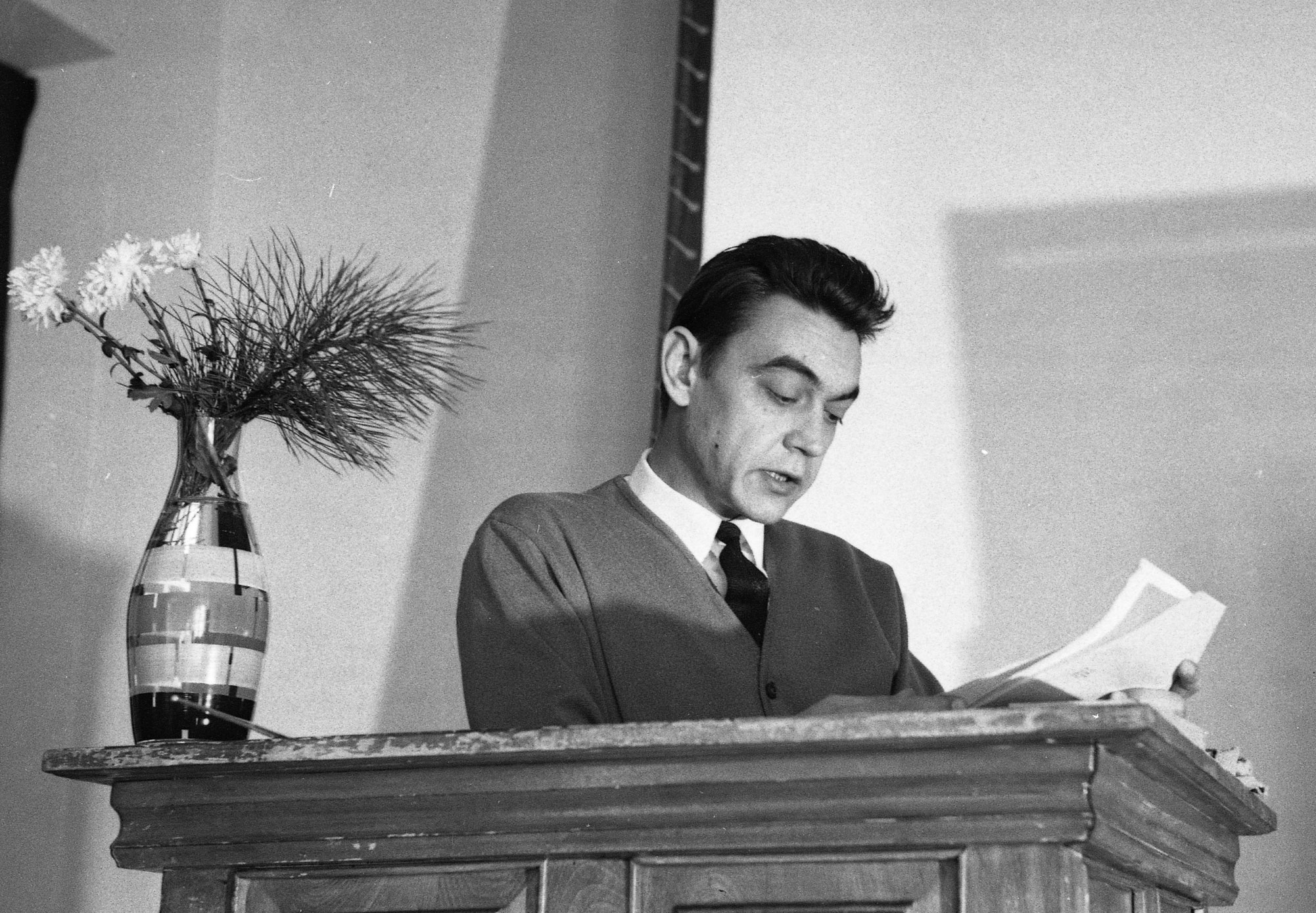 Тропин Ю. Д., старший научный сотрудник лаборатории магнетизма горных пород и геофизики Института физики Сибирского отделения Академии наук СССР, который изучал и объяснял некоторые закономерности вязкого намагничивания горных пород, фото 1968 года. Красноярск.