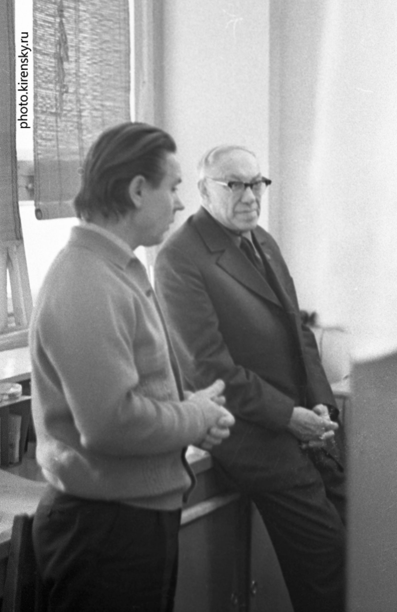 Гуревич А. А. (слева) и Трубачев И. Н., руководитель группы биохимии в лаборатории биофизики Института физики Сибирского отделения Академии наук СССР (ИФ СО АН СССР), фото 1967 г.