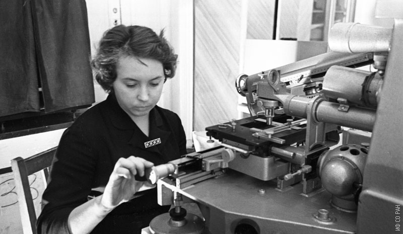Тустановская Елена Константиновна, сотрудник лаборатории молекулярной спектроскопии Института физики Сибирского отделения Академии наук СССР в 1965 году, за работой на микрофотометре МФ-4.