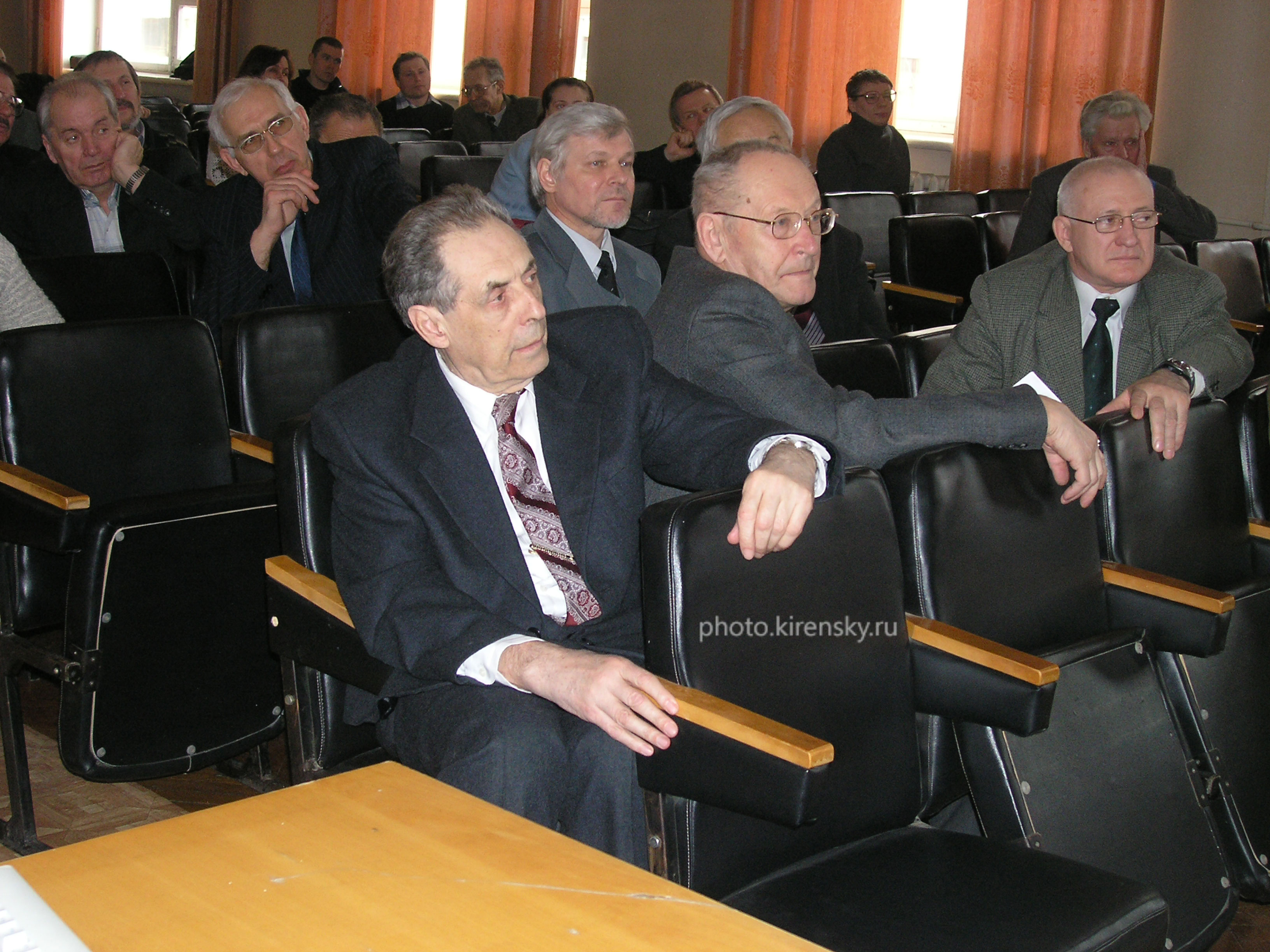 В апреле 2005 года в конференц-зале Института физики им. Л.В. Киренского Сибирского отделения Российской академии наук (ИФ СО РАН) проходили традиционные научные чтения памяти организатора и первого директора института академика Л.В. Киренского. В первом ряду: Александров К.С., советник РАН (слева), Владимиров В.М., заместитель председателя Президиума Красноярского научного центра Сибирского отделения РАН. Во втором ряду Ким П.Д., главный научный сотрудник лаборатории магнитодинамики Института физики (слева) и Галепов П.С., старший преподаватель Красноярского государственного политехнического университета. Красноярск.