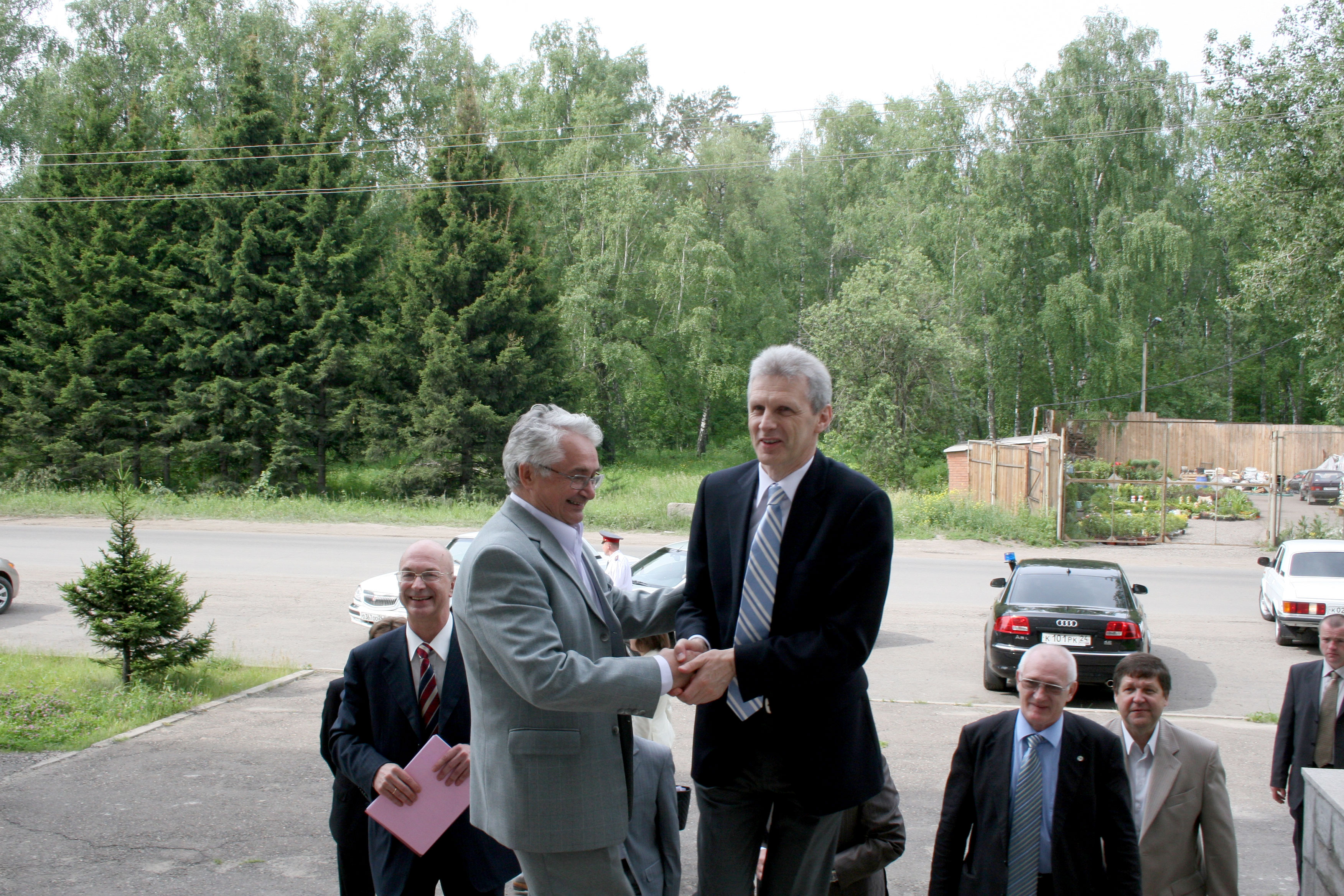 2006 год. На переднем плане академик В.Ф. Шабанов (слева), председатель Президиума Красноярского научного центра Сибирского отделения Российской академии наук (КНЦ СО РАН), и А.А. Фурсенко, министр образования и науки Российской Федерации. Посещение Красноярского регионального центра коллективного пользования Сибирского отделения Российской академии наук. Слева от Шабанова – Е.А. Ваганов, ректор Сибирского федерального университета (СФУ), справа от А.А. Фурсенко - В.М. Владимиров, заместитель председателя Президиума КНЦ СО РАН и В.В. Шайдуров, директор Института вычислительного моделирования СО РАН.