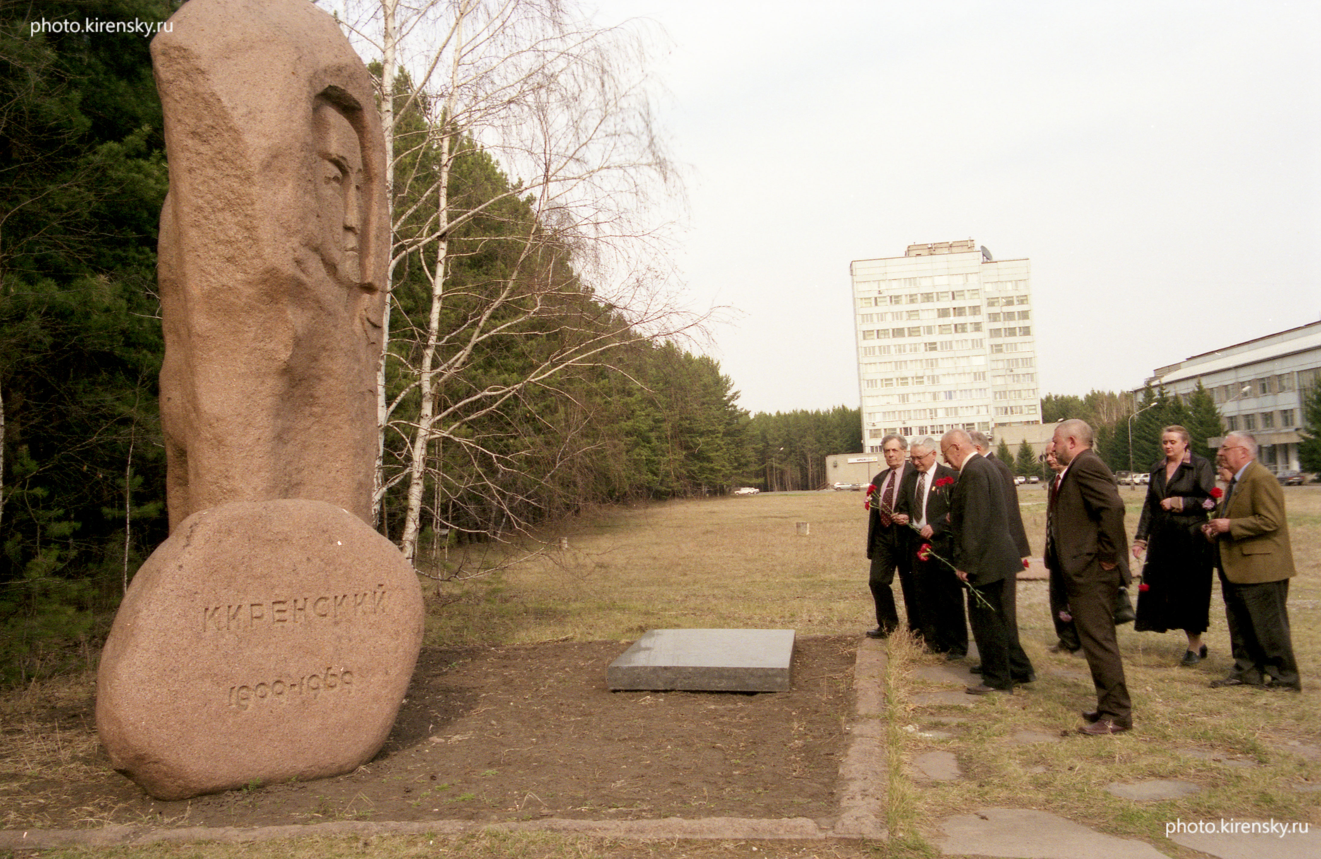 Традиционное возложение цветов к памятнику академика Л.В. Киренского, организатора и первого директора Института физики им. Л.В. Киренского Сибирского отделения Российской академии наук (ИФ СО РАН), в день его рождения. Леонид Васильевич похоронен на территории института его имени в Академгородке Красноярска.