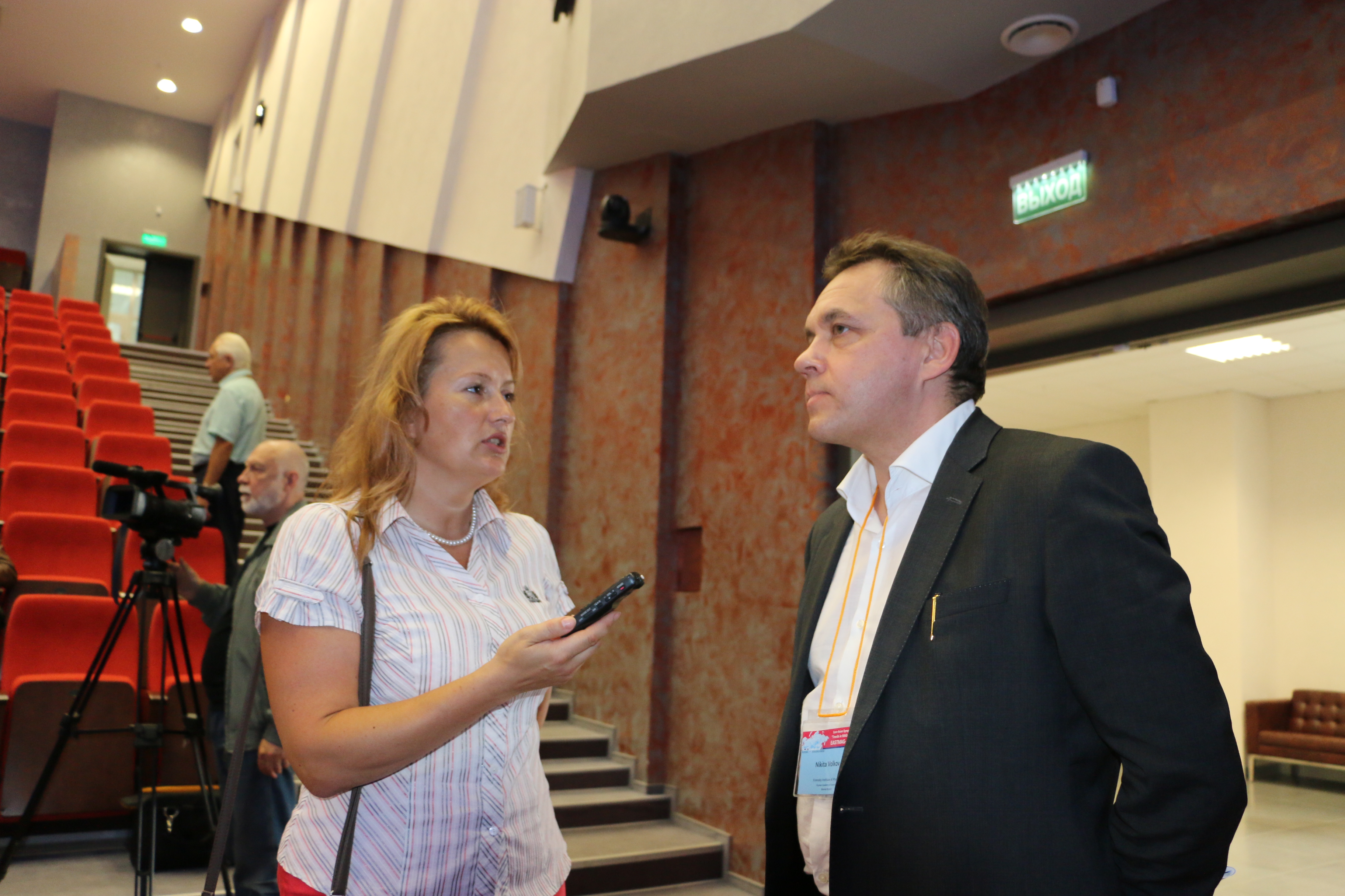Волков Никита Валентинович, директор Института физики им. Л.В. Киренского российской академии наук (ИФ СО РАН) председатель Организационного комитета Евро-Азиатского симпозиума "Прогресс в магнетизме" (EASTMAG-2016), организованного и проведенного в Красноярске в августе 2016 года, даёт интервью начальнику отдела общественных связей Сибирского федерального университета (Красноярск) Я.В. Жигаловой.