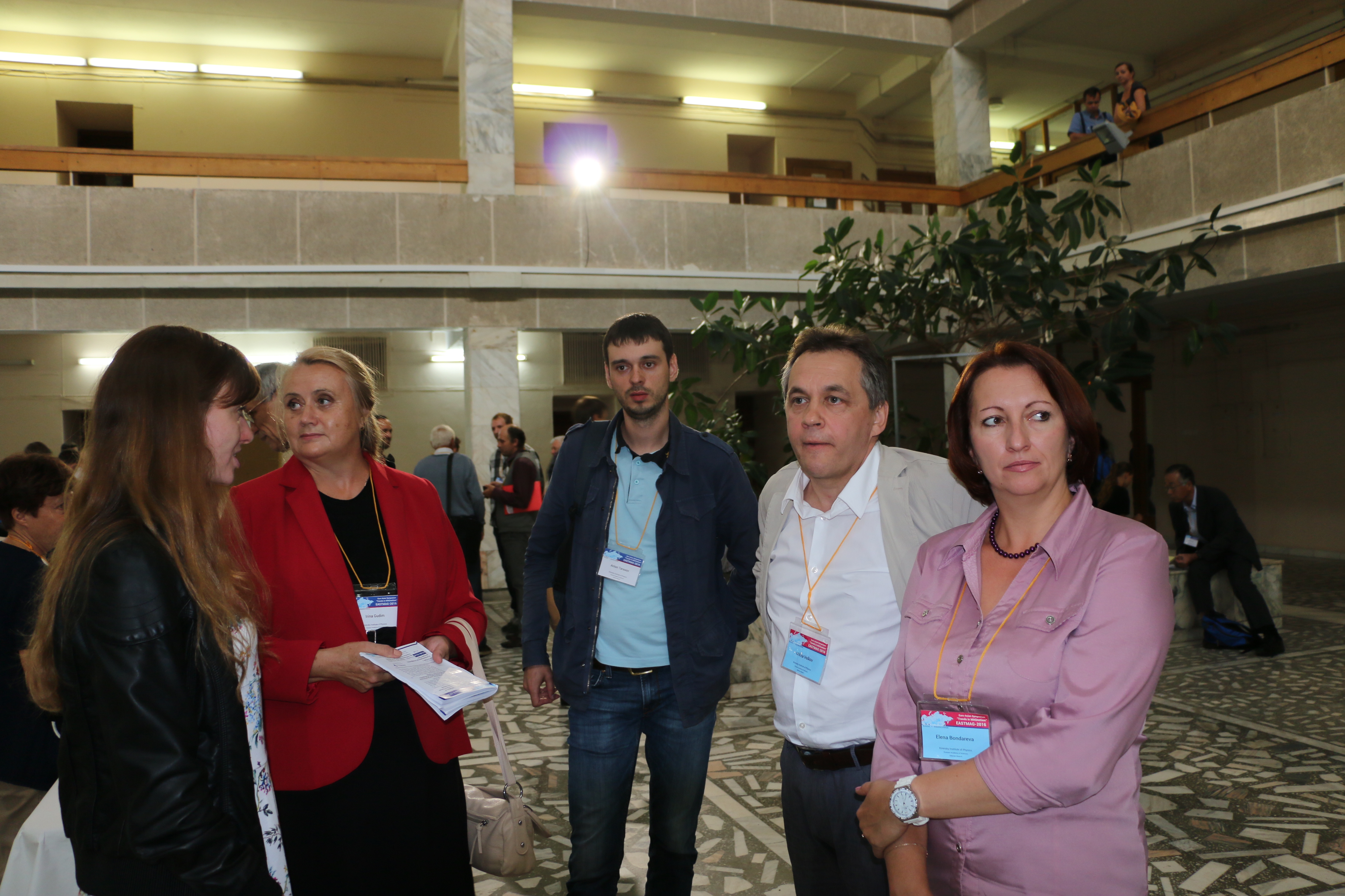 Открытие Евро-Азиатского симпозиума "Прогресс в магнетизме" (EASTMAG-2016), организованного и проведенного в Красноярске в августе 2016 года. Симпозиум проходил в конгресс-холле Сибирского федерального университета (СФУ). В первом ряду, третья слева Е.И. Шнейдер, старший научный сотрудник лаборатории физики магнитных явлений Института физики им. Л.В. Киренского Сибирского отделения Российской академии наук (ИФ СО РАН), и Н.В. Волков, директор Института физики СО РАН. Во втором ряду справа - А.И. Панкрац, ведущий научный сотрудник лаборатории резонансных свойств магнитоупорядоченных веществ Института физики СО РАН.