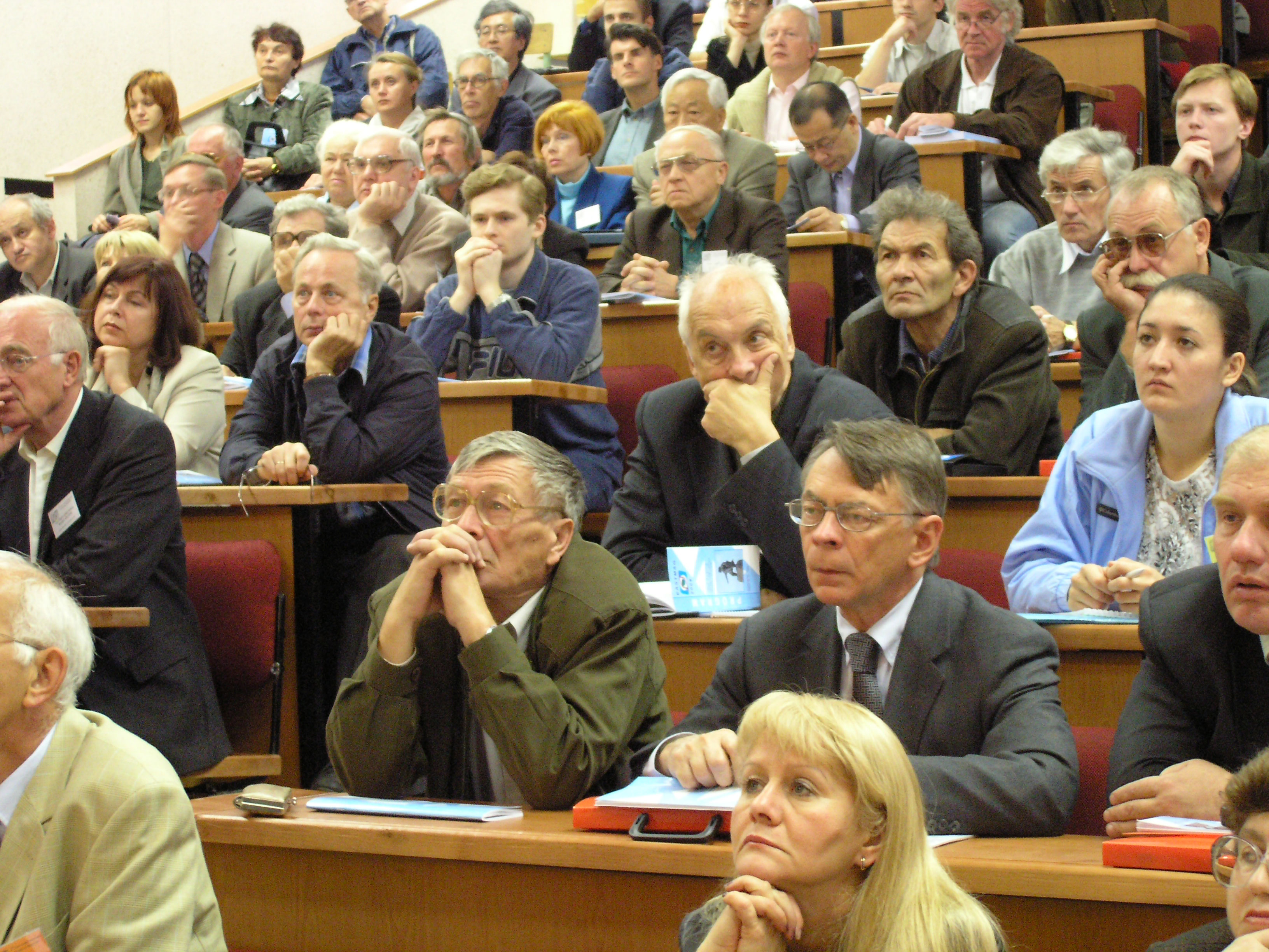 2004 год. 24-27 августа. Участники Евро-Азиатского симпозиума «Прогресс в магнетизме» (EASTMAG-2004), организованного и проведенного в Красноярске. Пленарное заседание. Во втором ряду сотрудники Института физики им. Л.В. Киренского Сибирского отделения Российской академии наук, слева направо: Тугаринов В.И., Фролов Г.И., Панкрац А.И.