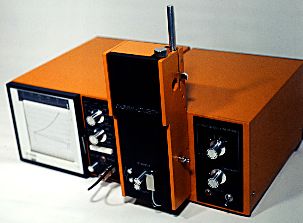 Люминометр, разработанный сотрудниками лаборатории радиоспектроскопии (руководитель А.Г. Лундин) и изготовленный в экспериментальных мастерских Института физики в 1974 году.