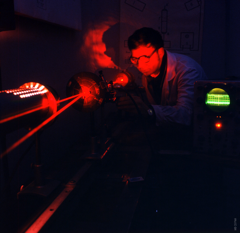 Исследование нелинейных преобразований лазерного излучения, на фото Замков А.В., 1980 г.