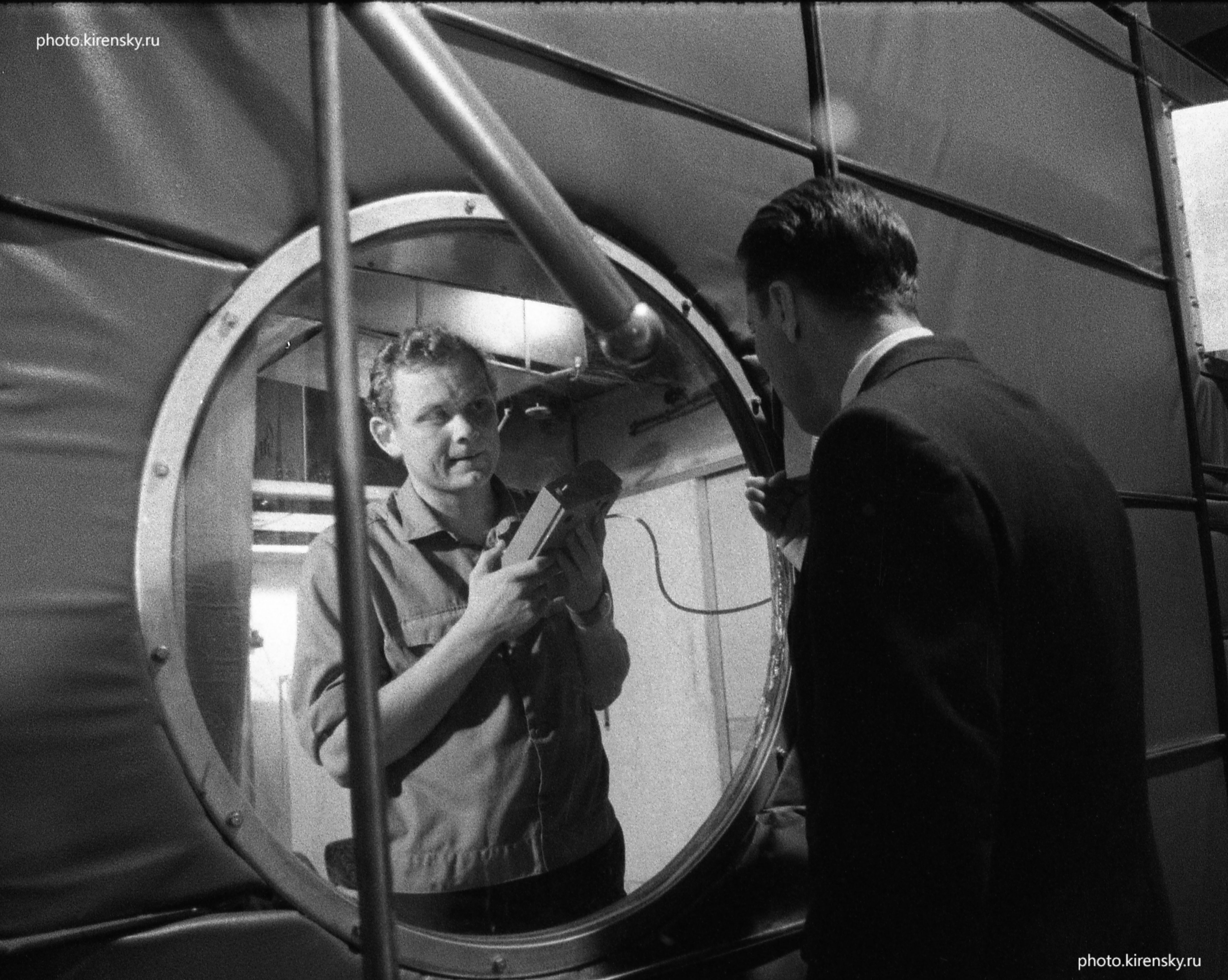 1973 год. Связь с внешним миром участников эксперимента на установке «БИОС-3», проведенного отделом биофизики Института физики им. Л.В. Киреннского Сибирского отделения Академии наук СССР (ИФ СО АН СССР), осуществляет Петров Н.И. с помощью переговорного пульта.