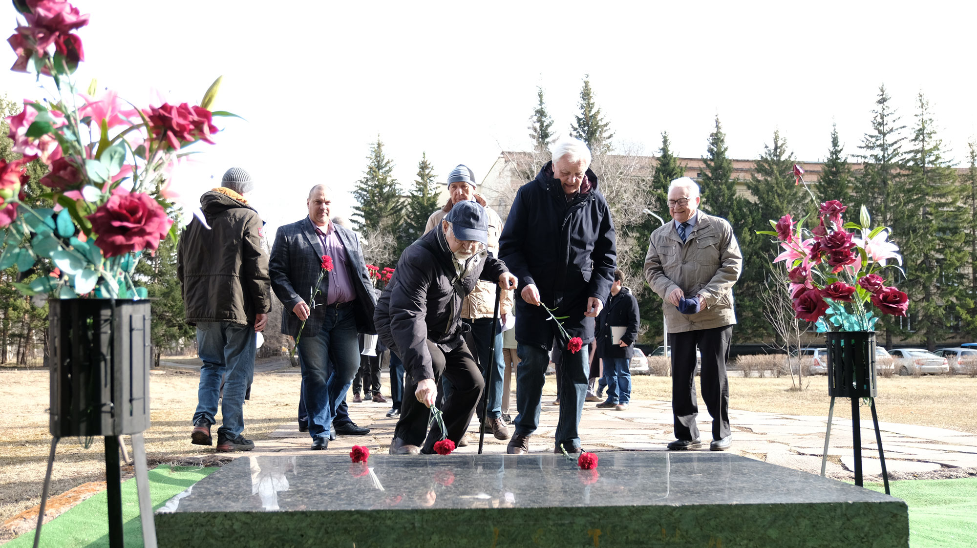 В конференц-зале Института физики им. Л.В. Киренского Сибирского отделения Российской академии наук ежегодно в день рождения академика Леонида Васильевича Киренского, организатора и первого директора института проходят научные чтения на расширенном заседании ученого Совета, посвященного его памяти. В 2025 году исполнилось 116 лет со дня рождения академика. По окончанию ученого Совета традиционно возлагаются цветы на могилу Леонида Васильевича. Он похоронен на территории института, носящего его имя в Академгородке Красноярска. На снимке, слева направо: А.Э. Соколов, заместитель директора ИФ по научной работе; В.Г. Архипкин, заведующий лабораторией когерентной оптики; за ним С.Г. Овчинников, заведующий лабораторией физики магнитных явлений; далее А.И. Панкрац, ведущий научный сотрудник лаборатории резонансных свойств магнитоупорядоченных веществ и академик В.Ф. Шабанов. 7 апреля 2025 года.