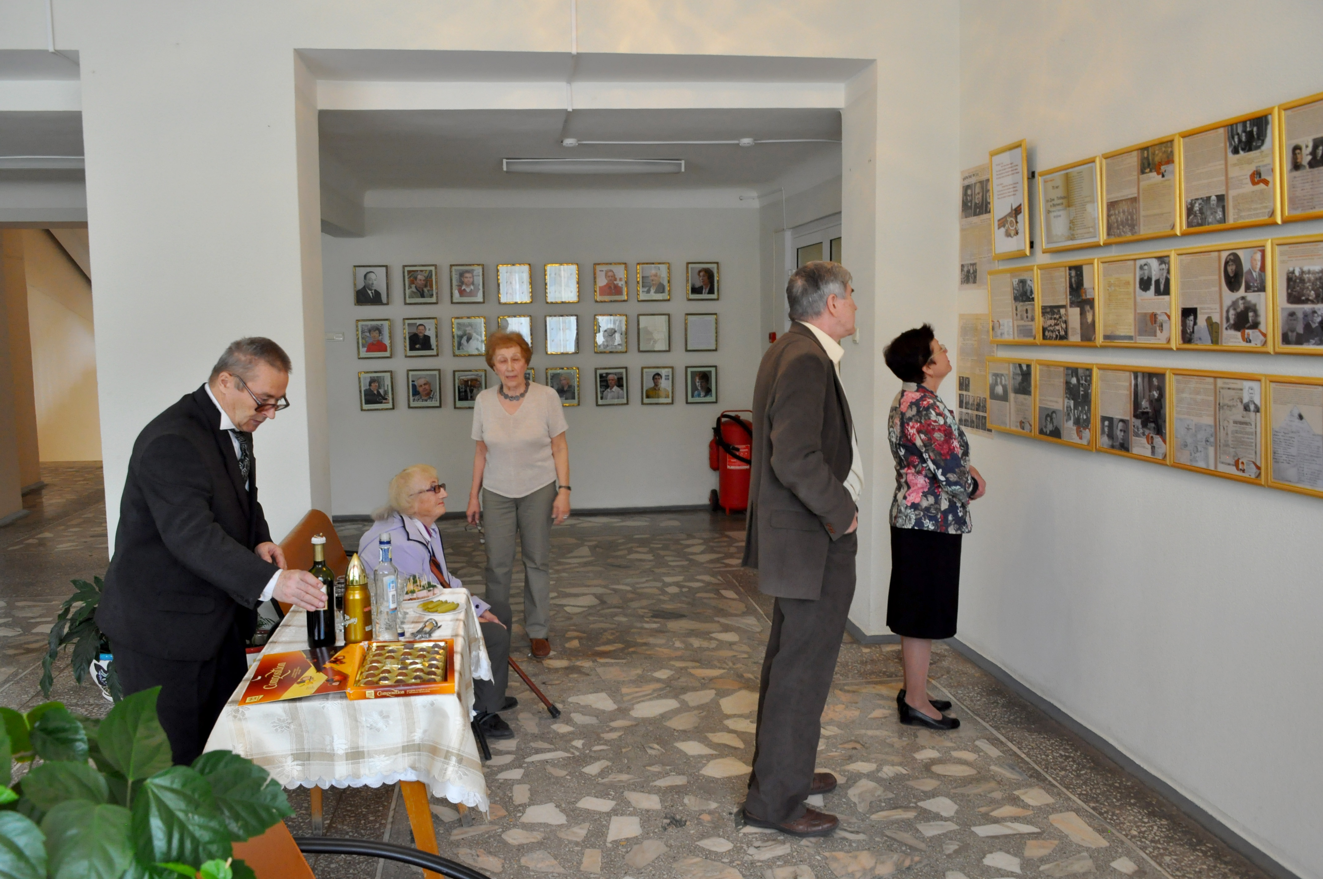 8 мая 2015 года. Открытие стенда "Живем и помним..." в холле Института физики им. Л.В. Киренского Сибирского отделения Российской академии наук (ИФ СО РАН), посвященного родителям и родственникам сотрудников института - воинам Великой Отечественной войны 1941-1945 гг. Слева направо: Воронов В.Н. , Саблина К.А., Хрусталева Л.М. У стенда Тюрнев В.В. и Матыгулина М.М. Красноярск.