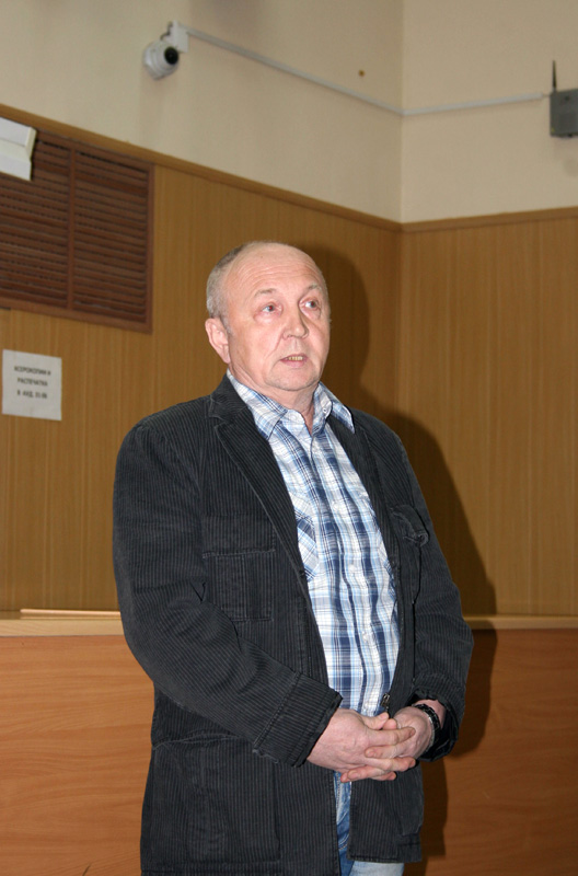 Выступает автор памятного барельефа, посвященного академику Л.В. Киренскому, доцент кафедры живописи и скульптуры Института архитектуры и дизайна Сибирского федерального университета (СФУ) С.Е. Лошаков, Красноярск, 2012 г.