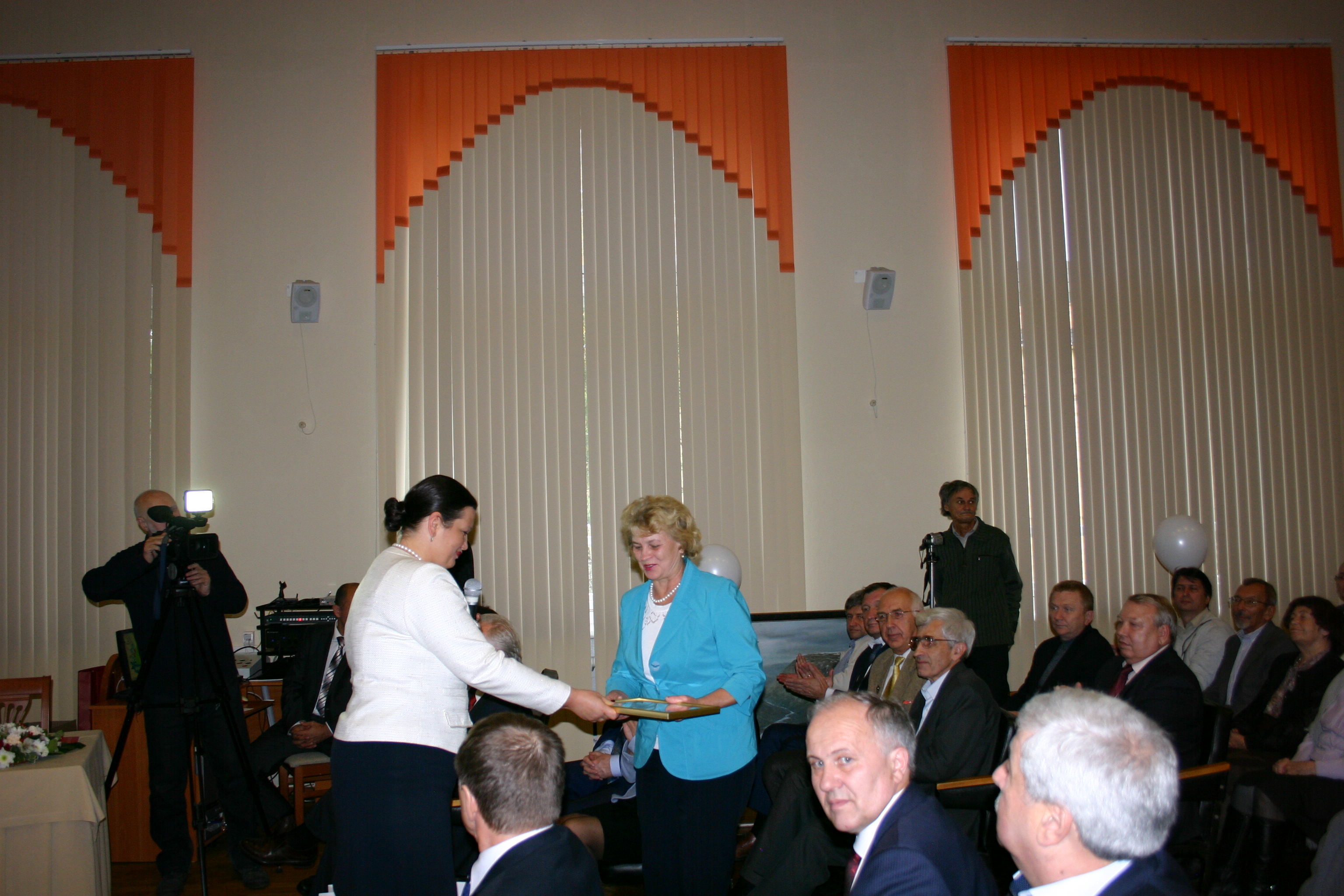 12 октября 2016 года. Конференц-зал ИФ СО РАН. Расширенное заседание ученого Совета, посвященное 60-летию образования института с участием сотрудников института, представителей администраций города и края, директоров предприятий-партнеров, директоров подразделений ФИЦ КНЦ СО РАН и других гостей. Благодарственное письмо Губернатора Красноярского края вручается Татьяне Ивановне Меньшиковой. Письмо вручает Н.В. Рязанцева, заместитель председателя правительства Красноярского края.