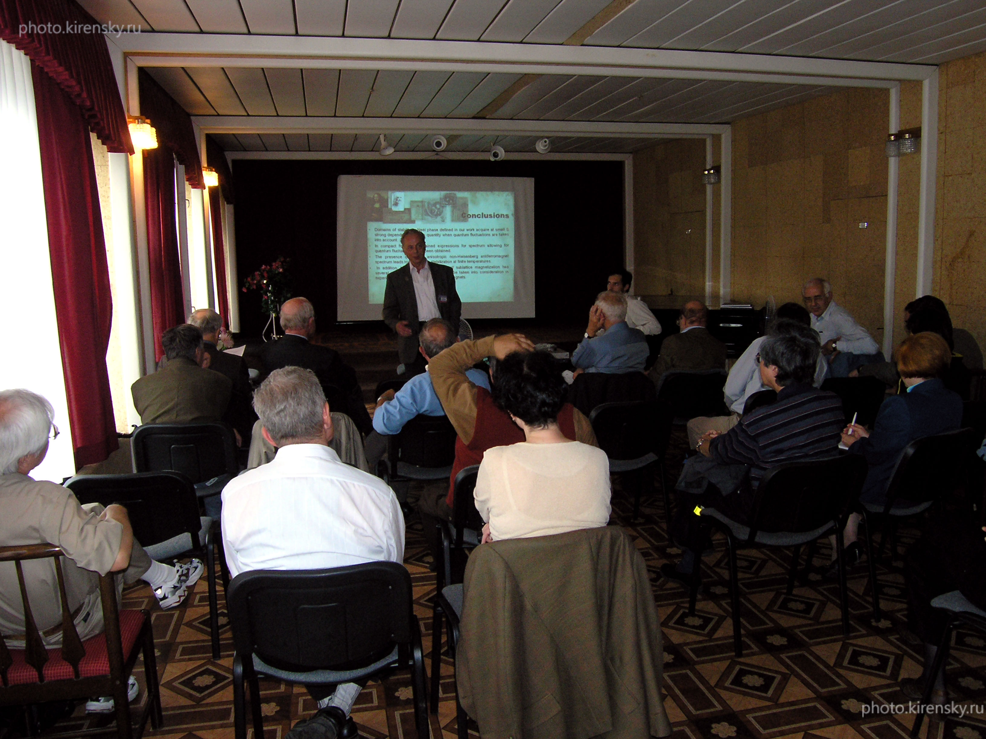2004 год. В Красноярске проходил Международный семинар NATO Workshop «Smart Materials for Ranging Systems (Современные материалы для применения в качестве датчиков)», подготовленный Институтом физики им. Л.В. Киренского Сибирского отделения Российской академии наук (ИФ СО РАН). Семинар проводился с 29 августа по 1 сентября. В нем приняли участие ученые из России, зарубежных стран и стран СНГ. На снимке: Петраковский Г.А., доктор физико-математических наук, профессор, Заслуженный деятель науки Российской Федерации, заведующий лабораторией резонансных свойств магнитоупорядоченных веществ Института физики Сибирского отделения Российской академии наук (ИФ СО РАН), выступает с докладом в Доме ученых Академгородка.
