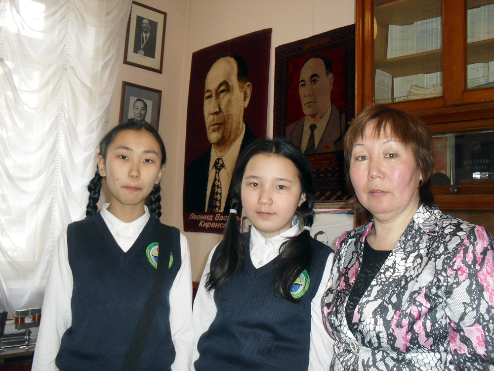 Слева направо: Степанова Оля, Соломонова Мария, учитель математики Неустроева Анастасия Павловна