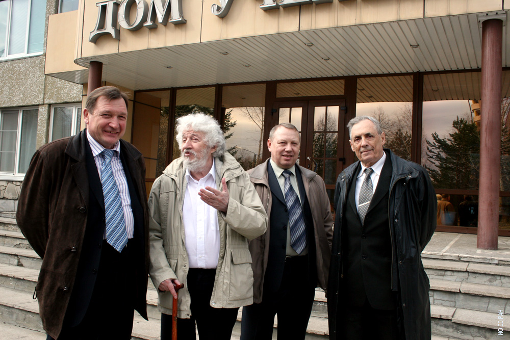 9 апреля 2009 года. После торжеств, посвященных 100-тию со дня рождения организатора и первого директора Института физики им. Л.В. Киренского Сибирского отделения Российской академии наук академика Леонида Васильевича Киренского. Фото на память у Дома ученых в Академгородке. Слева направо: ОНУЧИН А. А., директор Института леса им. В.Н.Сукачева СО РАН, ХЛЕБОПРОС Р.Г., исполнительный директор Международного научного центра исследований экстремальных состояний организма при Президиуме Красноярского научного центра СО РАН, ПАТРИН Г.С., заведующий лабораторией магнитодинамики Института физики, академик ГИТЕЛЬЗОН И. И. Красноярск.