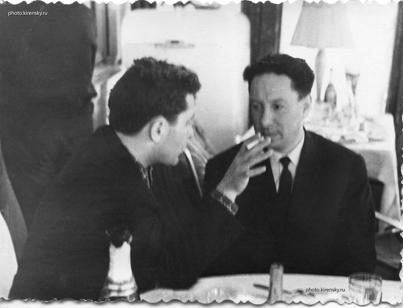 Захаров Ю.В. (слева) и Лундин А.Г. на теплоходе «В. Чкалов», НА СИМПОЗИУМЕ ПО СВЕРХСИЛЬНЫМ МАГНИТНЫМ ПОЛЯМ (рейс Красноярск – Дудинка - Красноярск). Симпозиум организован и проведен Институтом физики Сибирского отделения Академии наук СССР в 1966 году.