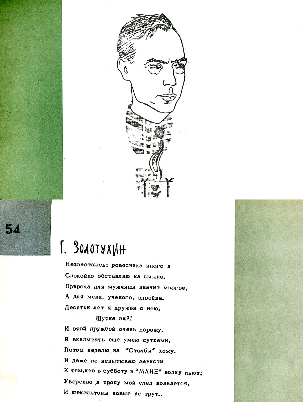 Дружеский шарж Золотухина Г.Е. из книги "Музей друзей", изданной научными сотрудниками института Олегом Артемьевичем Баюковым и Николаем Сергеевичем Чистяковым. Удивительная книжка дружеских шаржей и эпиграмм на сотрудников Института физики СО АН СССР. Она вышла в 1967 году к 10-летию начала работы института. Вышла небольшим тиражом в 100 экземпляров и распространялась строго по списку, лично в руки. Узнать себя на страницах книги смогли 48 самых ярких и заметных личностей молодого института. Позже (в 1971 году) вышла вторая книга под таким же названием. Что побудило их взяться за такой труд, авторы подробно изложили в предисловии к первой и второй книгам. Книги размещены на сайте.